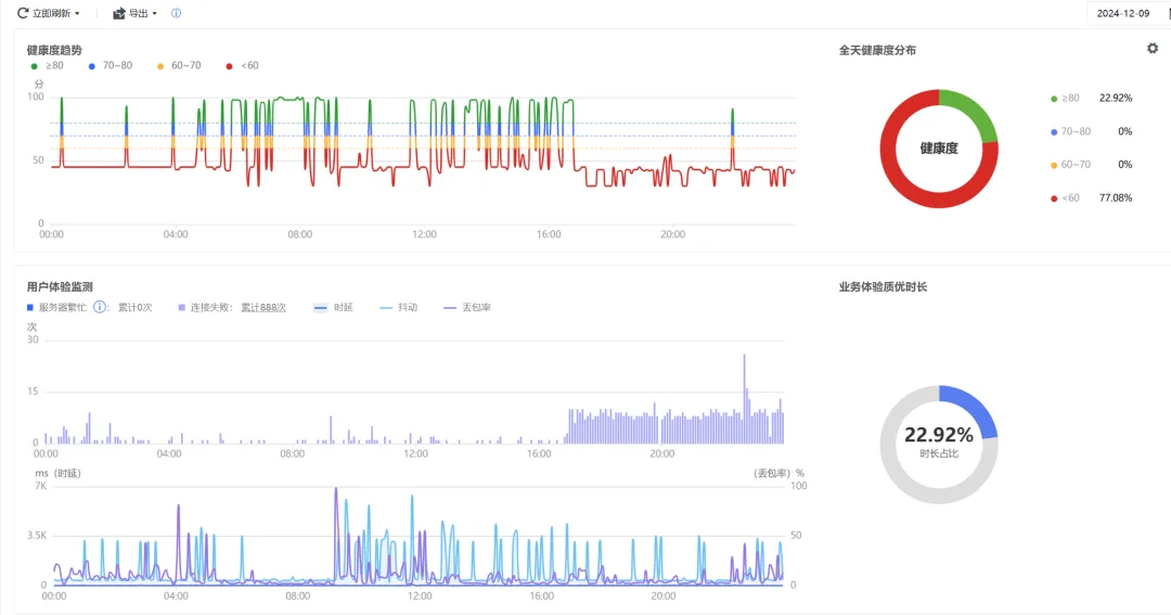 通过平台的网络质量感知以及业务质量感知功能,信锐无线AP可通过模拟终端检测网络情况及MES业务使用情况(图三),实现一天96次网络全面巡检;可提前发现网络连通性故障,业务系统访问情况,第一时间处置风险,预防大面积网络访问异常,实时保障网络健康。