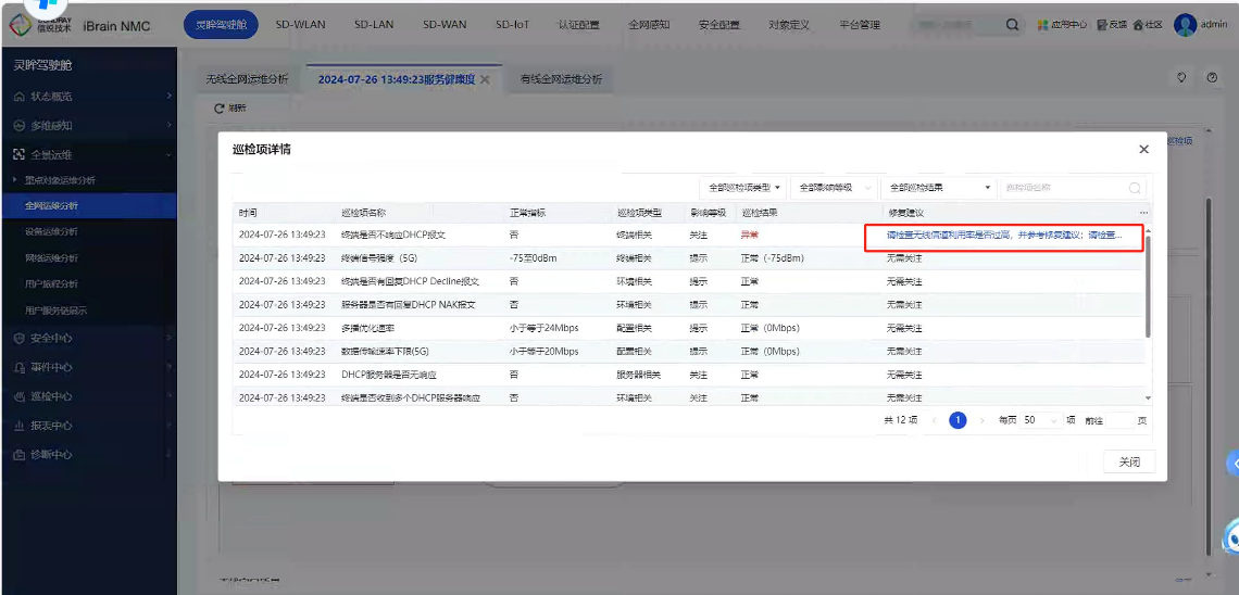 再通过点击具体的巡检异常项,可以钻取到针对该异常项,结合平台内置模型给出的处置办法,快速知道了该如何解决问题。