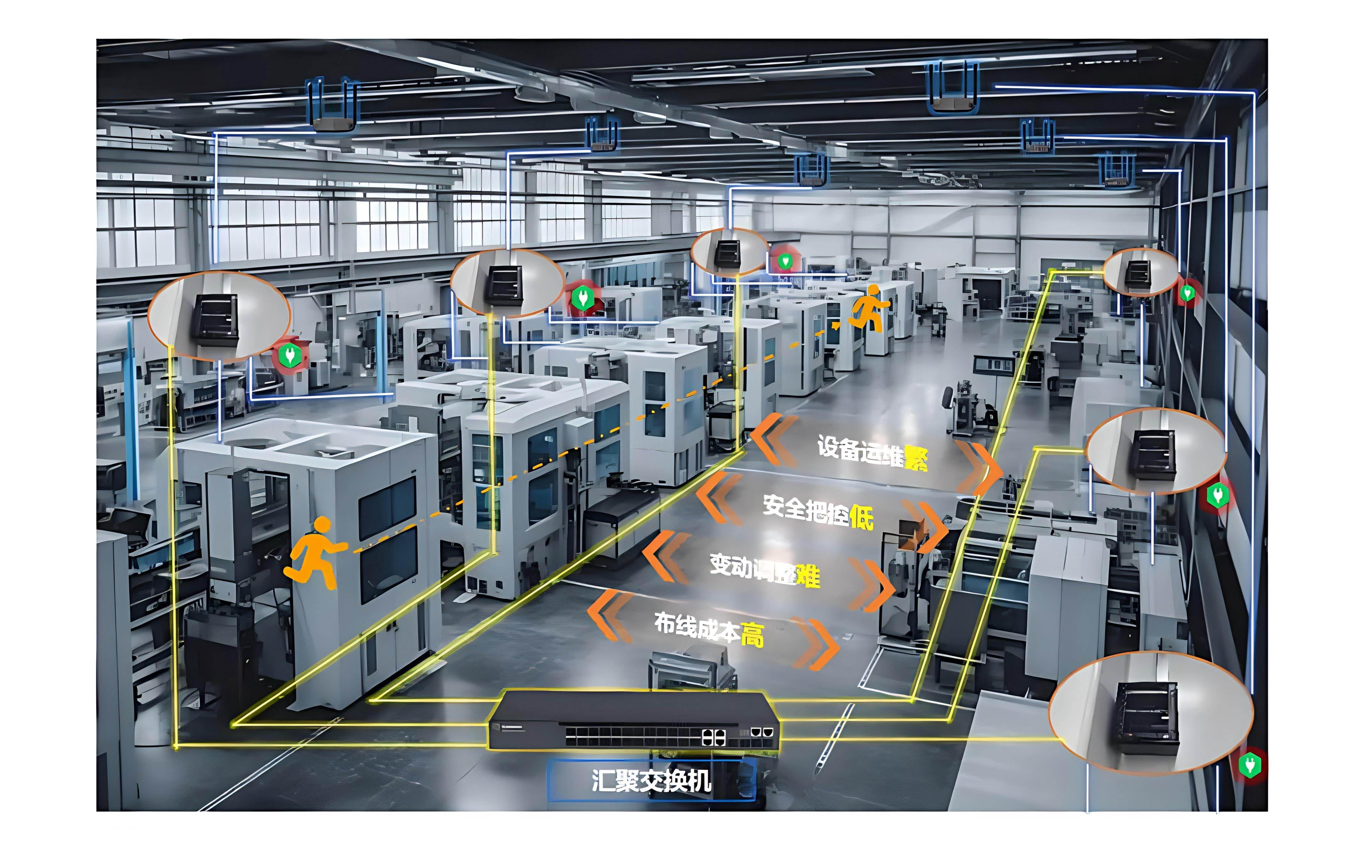 传统生产网络采用中心机房到弱电井再到工作区的树型布线架构,任何产线变动都需要重新布线,灵活性差,无法适应现代制造业柔性生产的需求。