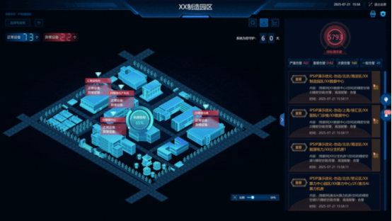 IPSIP可提供“区域、园区、单体”驾驶舱的多层级联动展示,即可以实现“电子嵌套式地图-园区-楼栋-机房/弱电间”级的精细化层层钻取查看,实现能看能控能告警,鼠标点点全掌控。并且驾驶舱的每个模块都不孤立存在,可与告警信息、设备状态等实现智能联动。