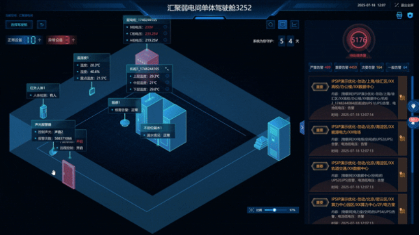 IPSIP具备广泛的适用场景,驾驶舱涵盖了党政、央国企、能源电力、医疗、教育、制造业、轨交、金融等行业的数据中心、分支机房、弱电间、档案室、电池室、仓库等场景。
