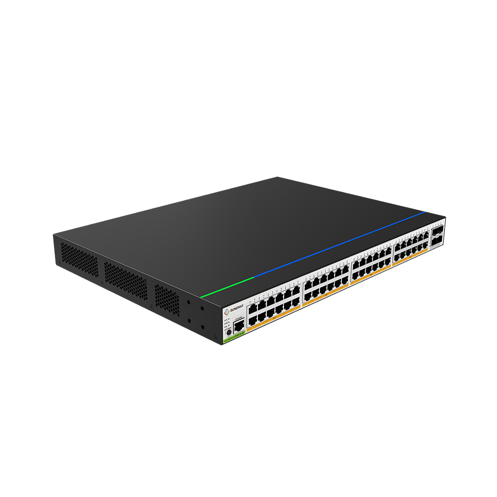 HS5100-52X-PWR-SI-48T交换机是信锐技术自主研发的干兆电口下行万兆上行盒式 交换机产品。整机提供52个固定端口,含48个千兆电口、4个万兆 SFP+光口;支持胖瘦模式切换,瘦模式下零配置上线管理 实现即插即用;支持NAC/NMC集中配置管理,包括端口信息 VLAN、端口开关等。
