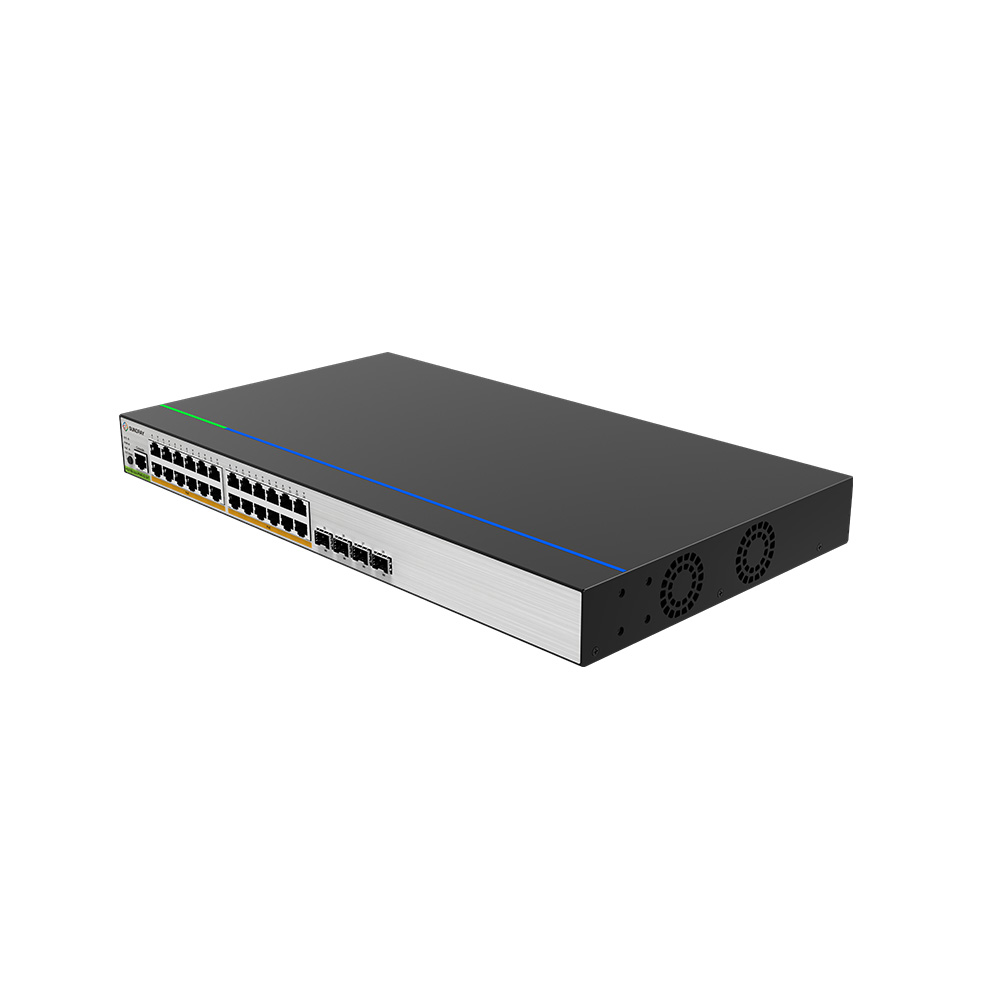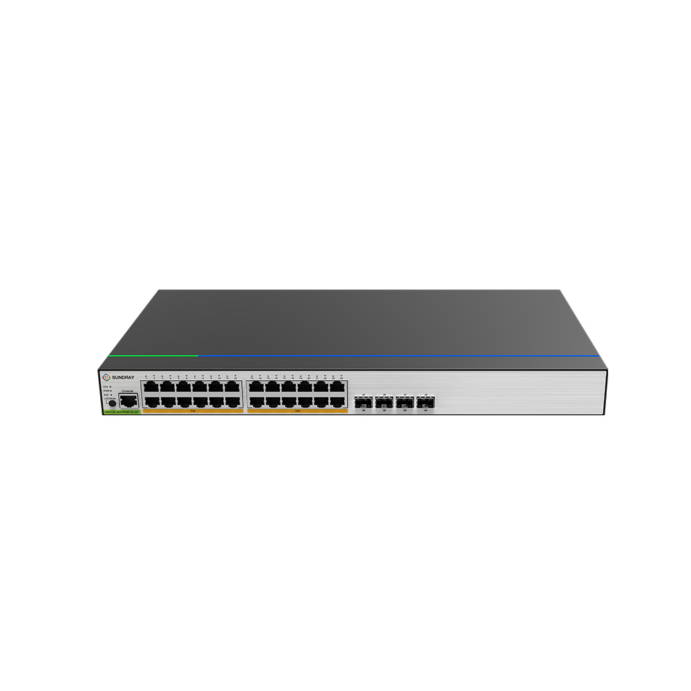 HS5100-28X-PWR-SI-24T交换机是信锐技术自主研发的干兆电口下行万兆上行盒式 交换机产品。整机提供28个固定端口,含24个千兆电口、4个万兆 SFP+光口;支持对外PoE供电,支持胖瘦模式切换,瘦模式下零配置上线管理 实现即插即用;支持NAC/NMC集中配置管理,包括端口信息 VLAN、端口开关等。