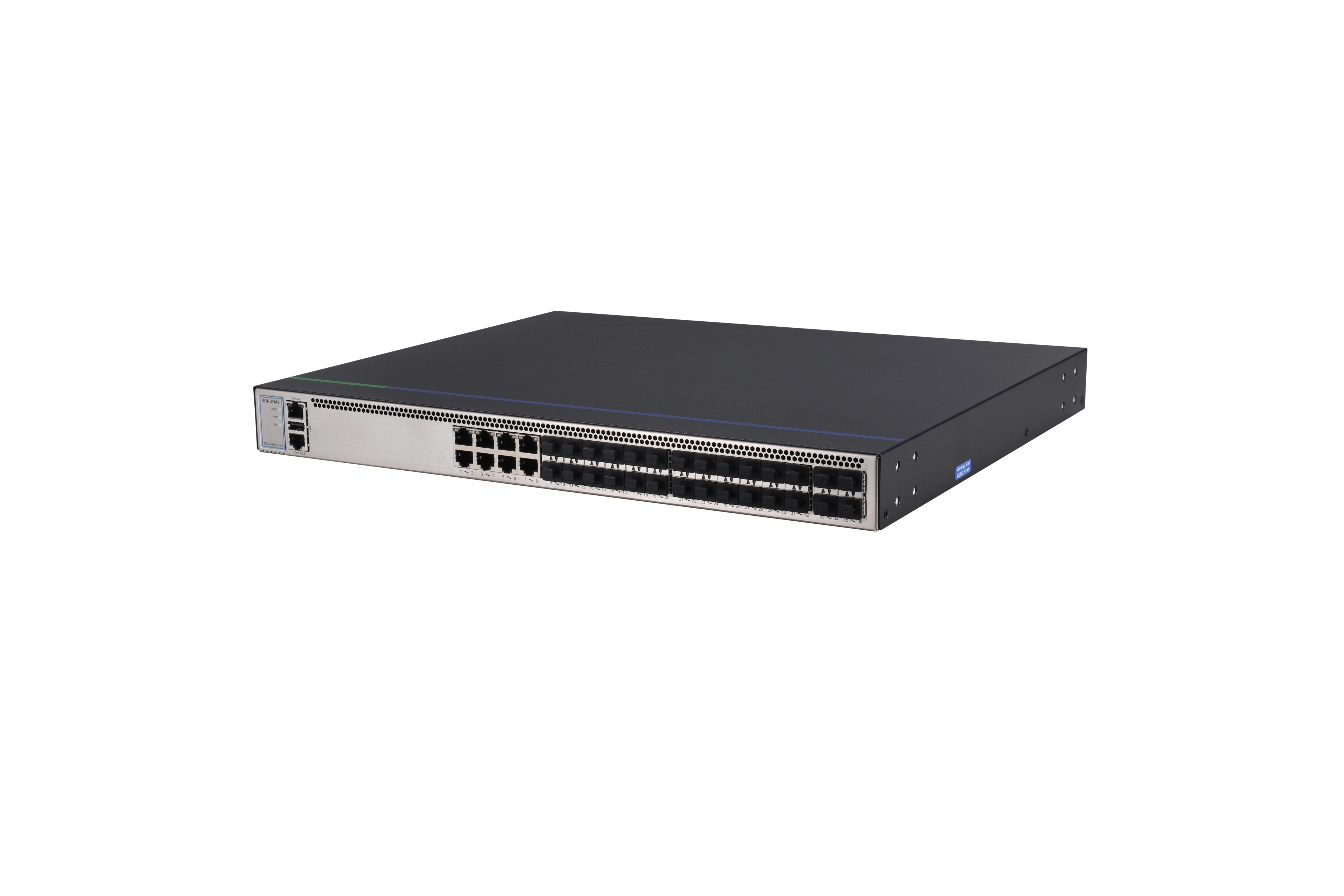 8个10/100/1000Base-T以太网口,24个千兆SFP光口,4个万兆SFP+光口,1个扩展槽位 |